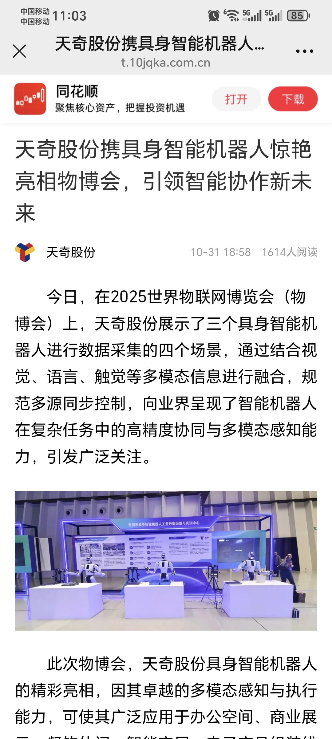 $天奇股份(SZ002009)$ 为制造业巨头富士康提供人形机器人,中国工业人形机器人龙头诞生了。