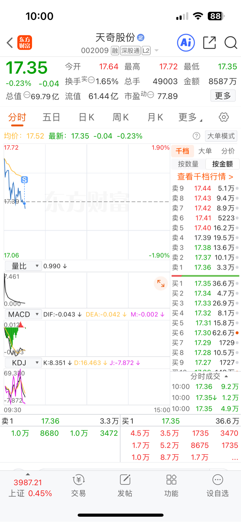 $天奇股份(SZ002009)$ 亏2%走了