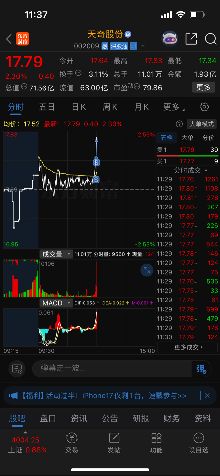 $天奇股份(SZ002009)$ 我是卖了,这垃圾再也不来了