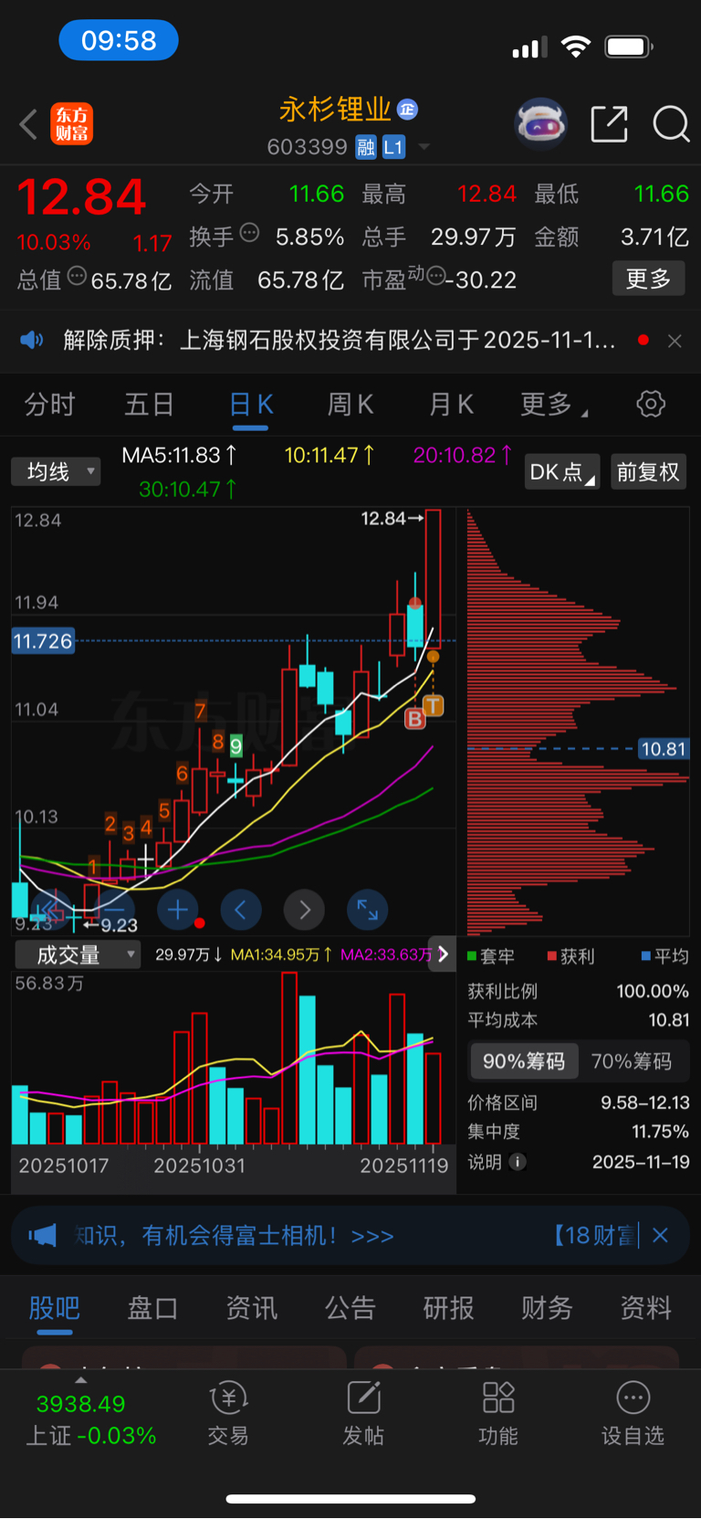 昨天卖了天奇,买入永衫锂业,直接回本了
