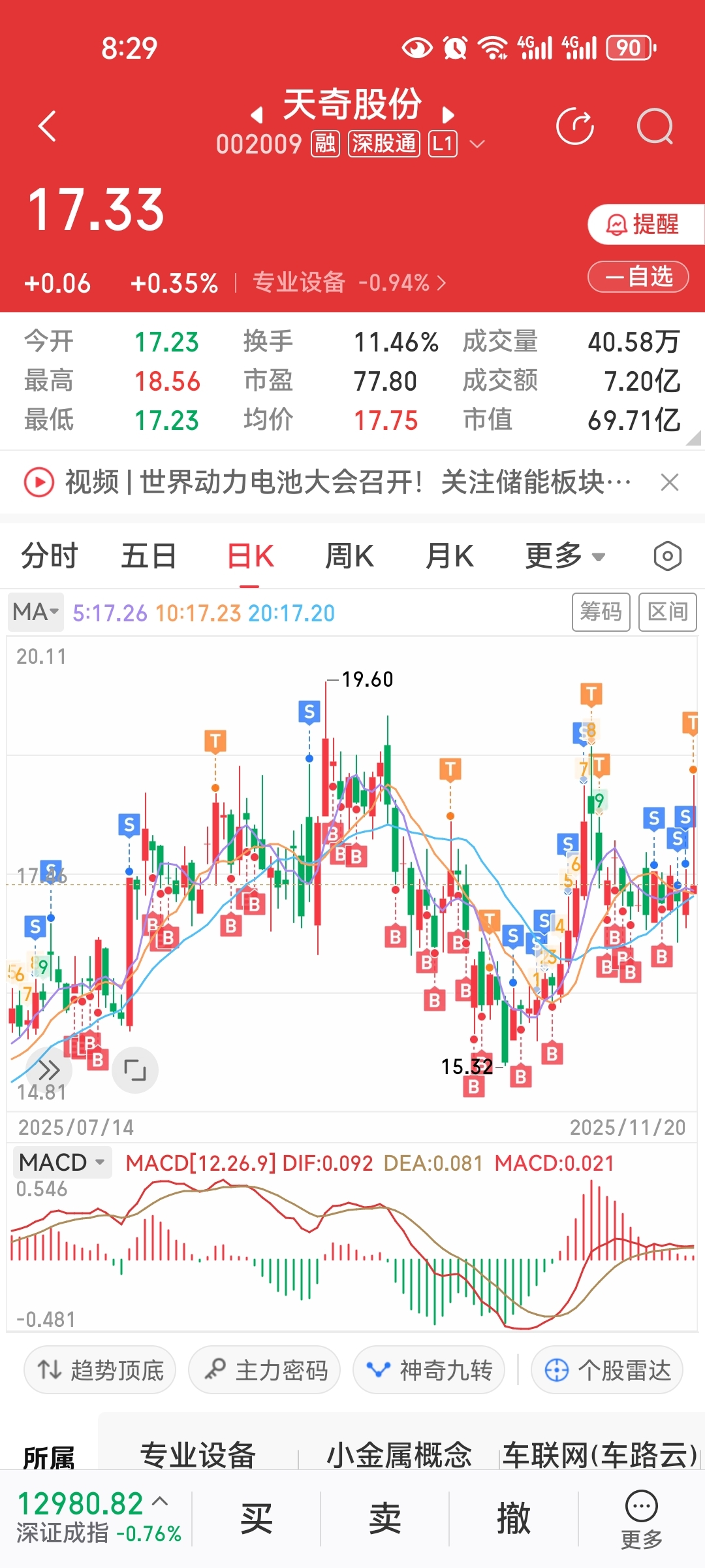 $天奇股份(SZ002009)$ 今天你又做T了没