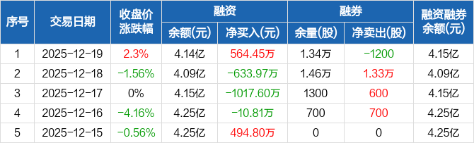 天奇股份:融资净买入564.45万元,融资余额4.14亿元(12-19)