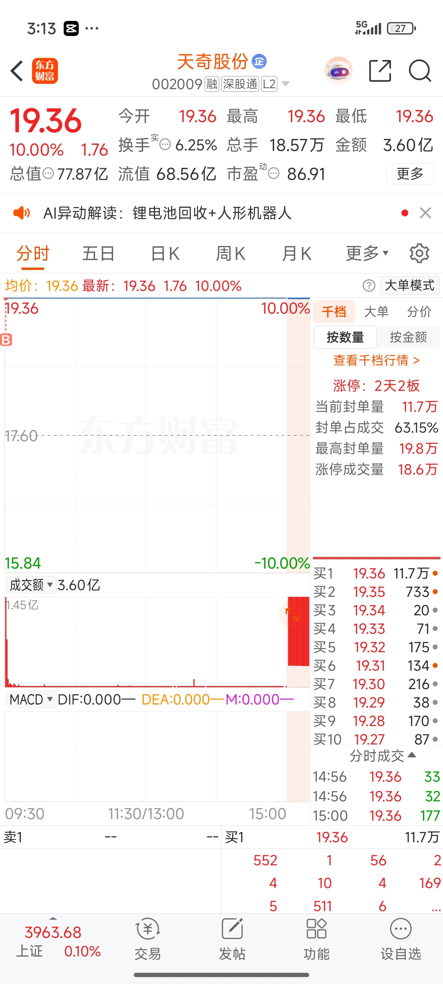 $天奇股份(SZ002009)$ 隔夜单进去了,还以为是高开的,竞价弱转强了,硬顶吧,