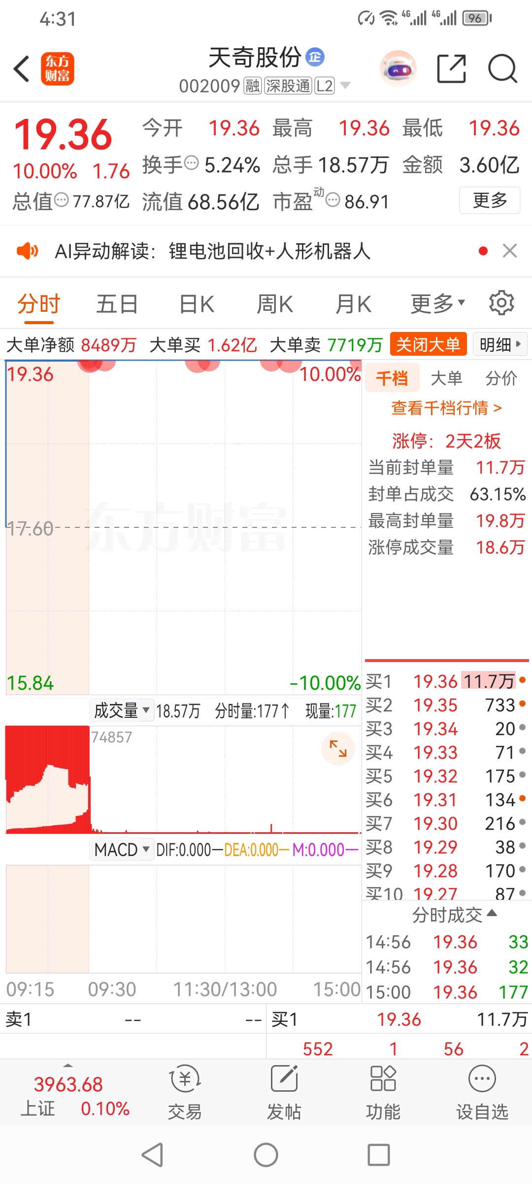 @妙想@炒股冠军军哥@炒股冠军方军天奇股份,军哥游资股票,集合竞价分析,主力,涨
