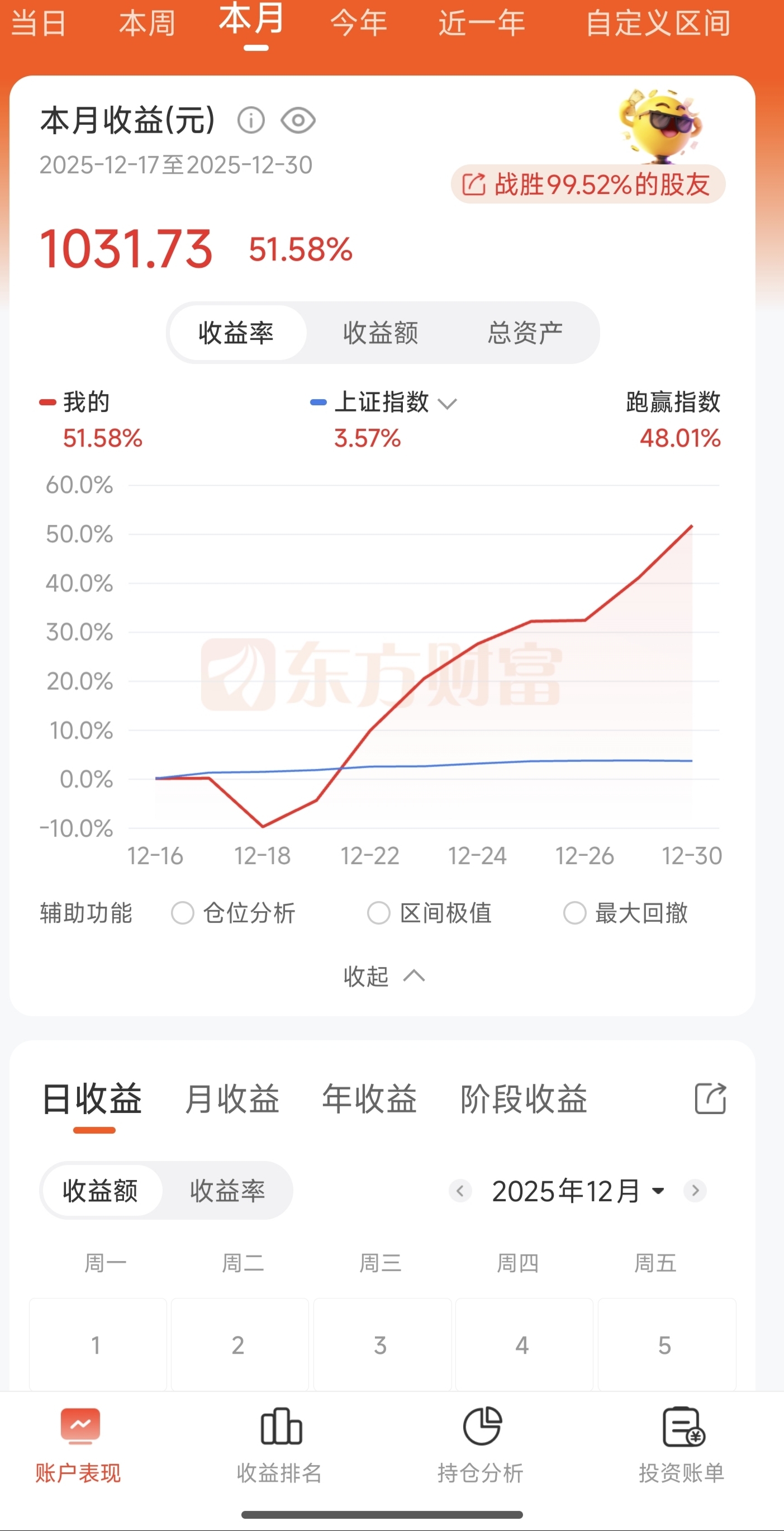 最近才感受到炒股的乐趣,2000元小资金才十多天就赚了50%,另一个账户20万一