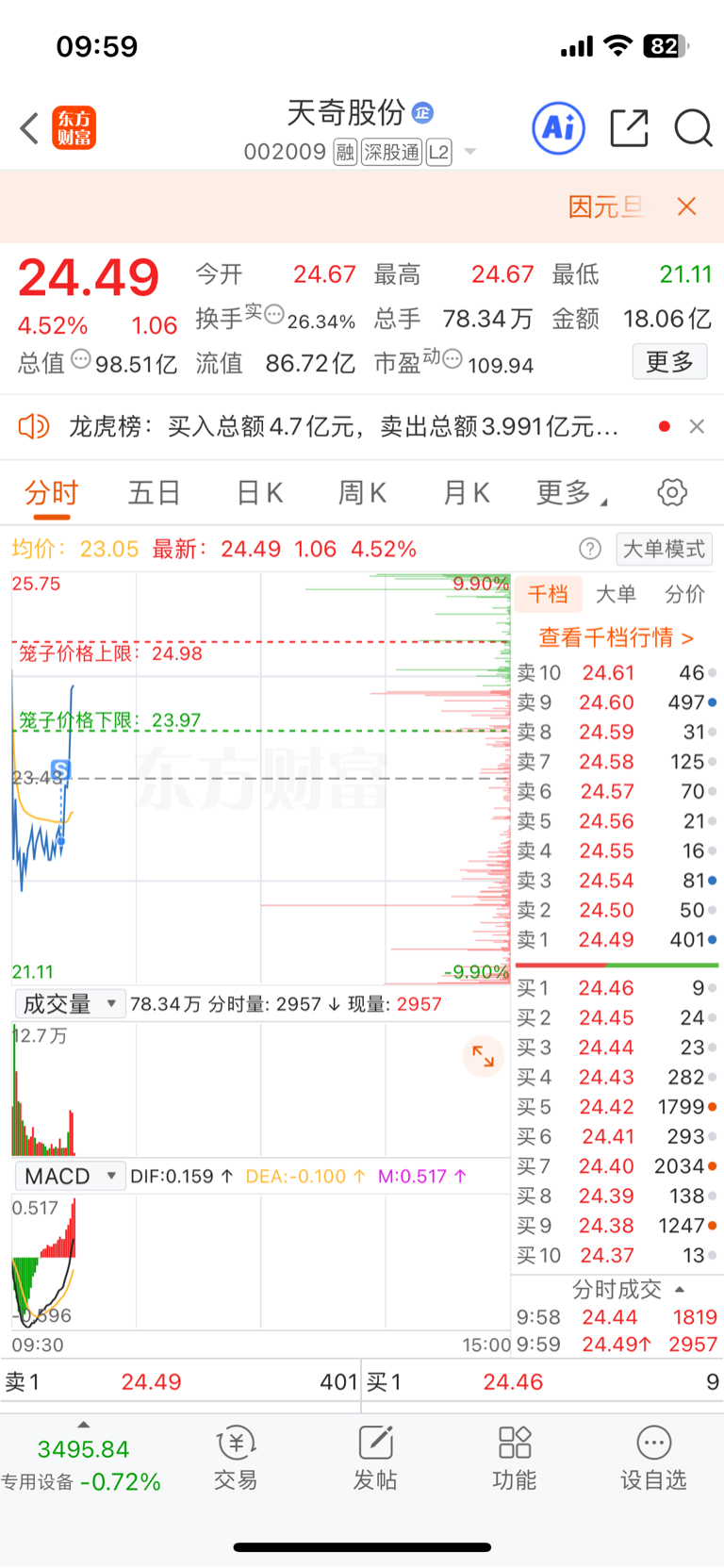 $天奇股份(SZ002009)$ 我不卖你不拉,我咔咔咔