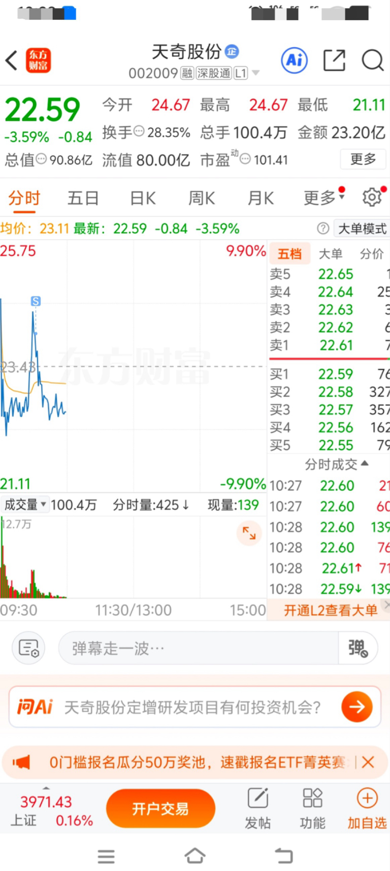 $天奇股份(SZ002009)$ 昨天承接力位置回来,今天变化确实快,实时关注着,今天早上高位下车,不要贪恋太多节假日在即要及时落袋为安!!