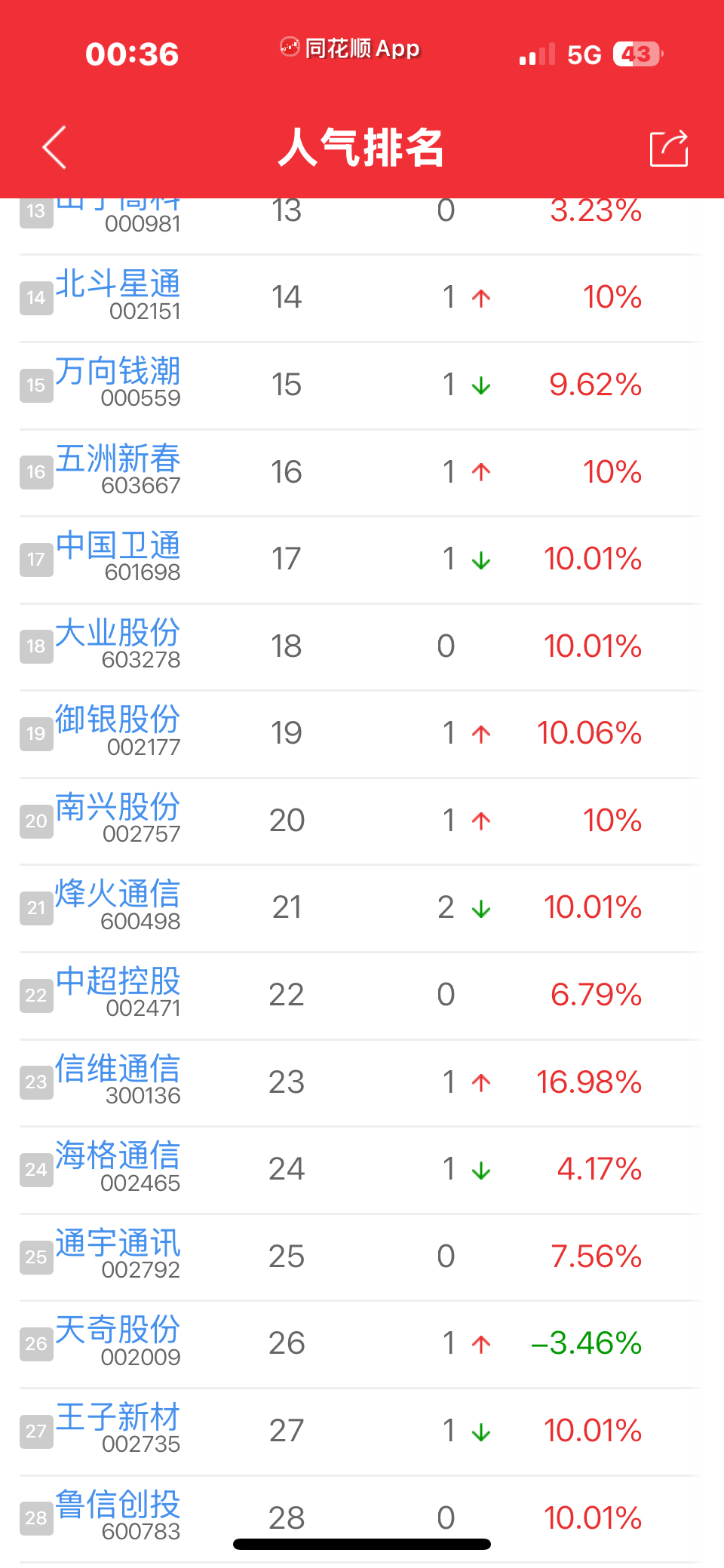 $天奇股份(SZ002009)$ 筒化川页26名了!