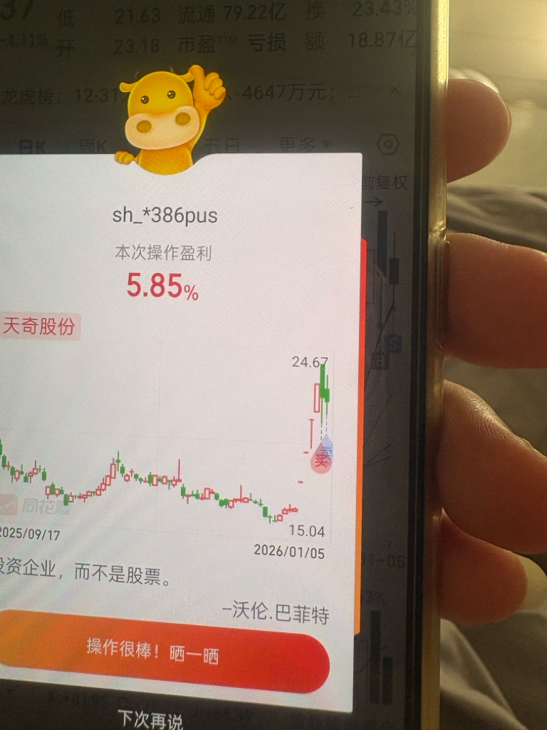 $天奇股份(SZ002009)$ 今天爽了,上个交易日抄底了天奇,今天基本最高点卖了!差不多跌停买了大业股份!哈哈哈