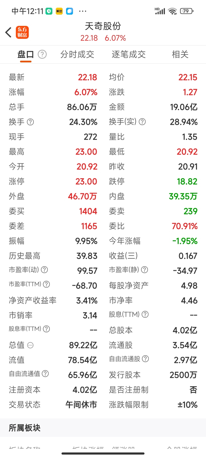 $天奇股份(SZ002009)$ 外盘买大于内盘,明天站上前期高点