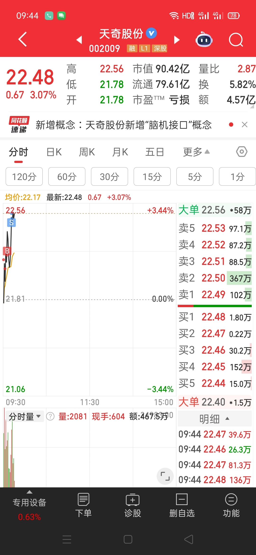 $天奇股份(SZ002009)$ 竞价没挂进去,最后那几秒价格上去了,看好你才把泰尔走了……今天操作完成剩下看天意