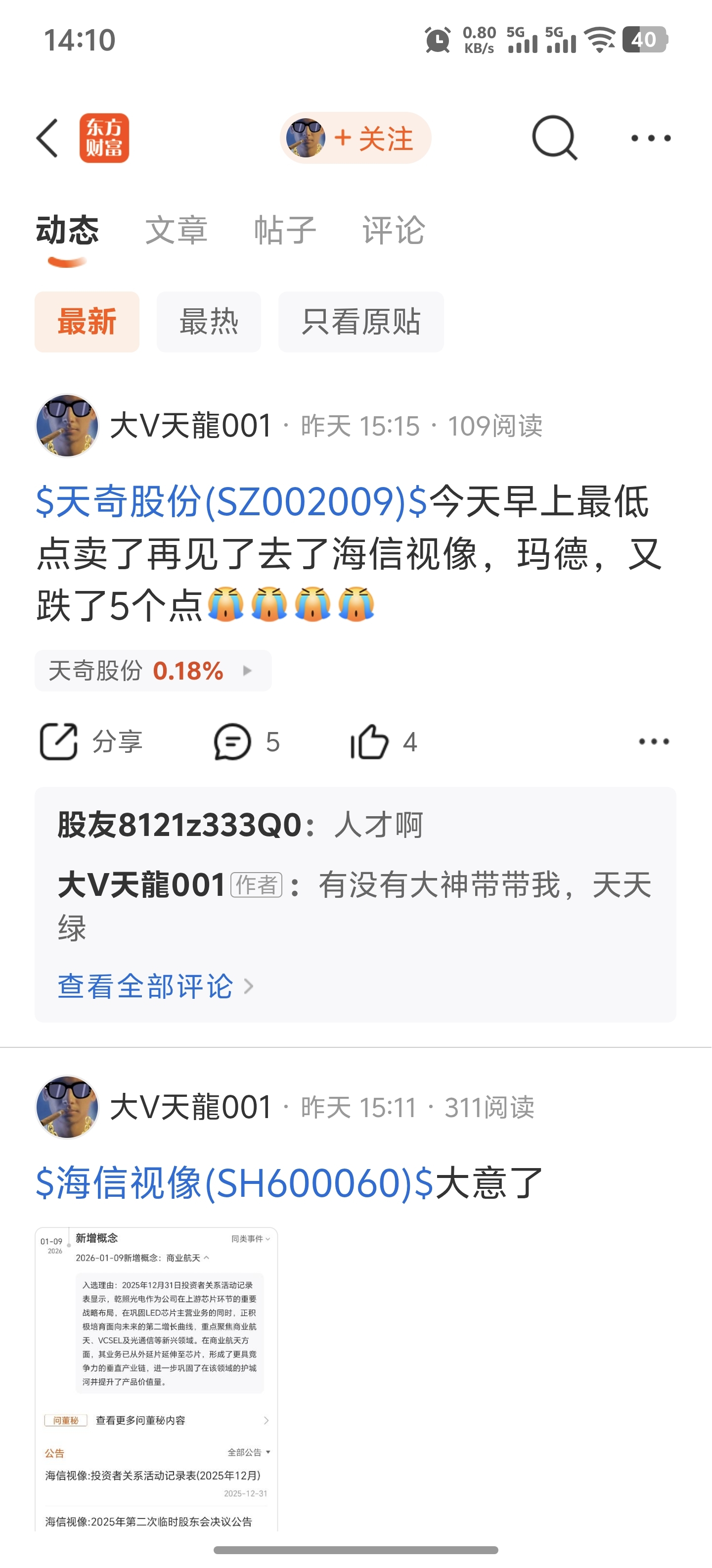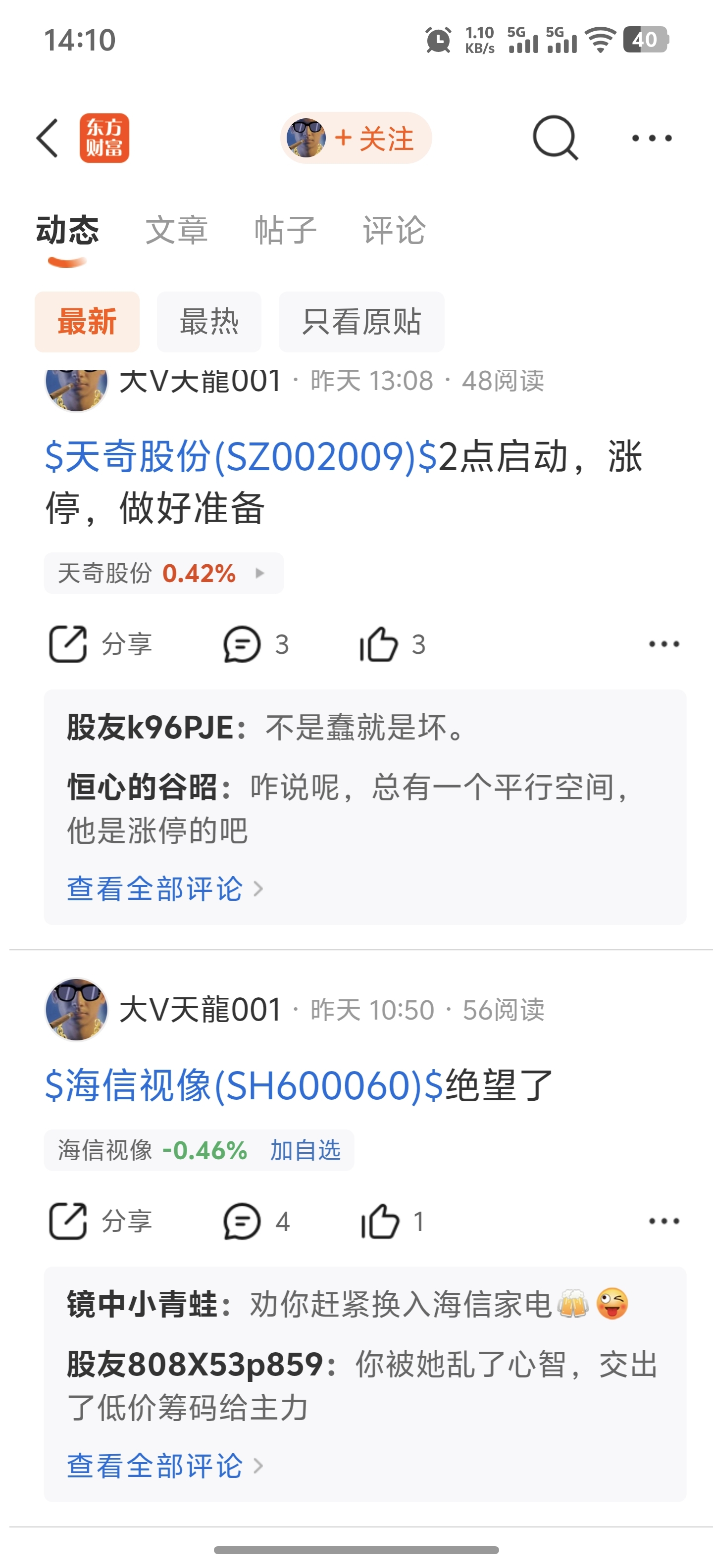 在天奇的的股吧,这哥们就是一害虫,看见就直接喷就行。他自己在其他地方亏麻了,就在