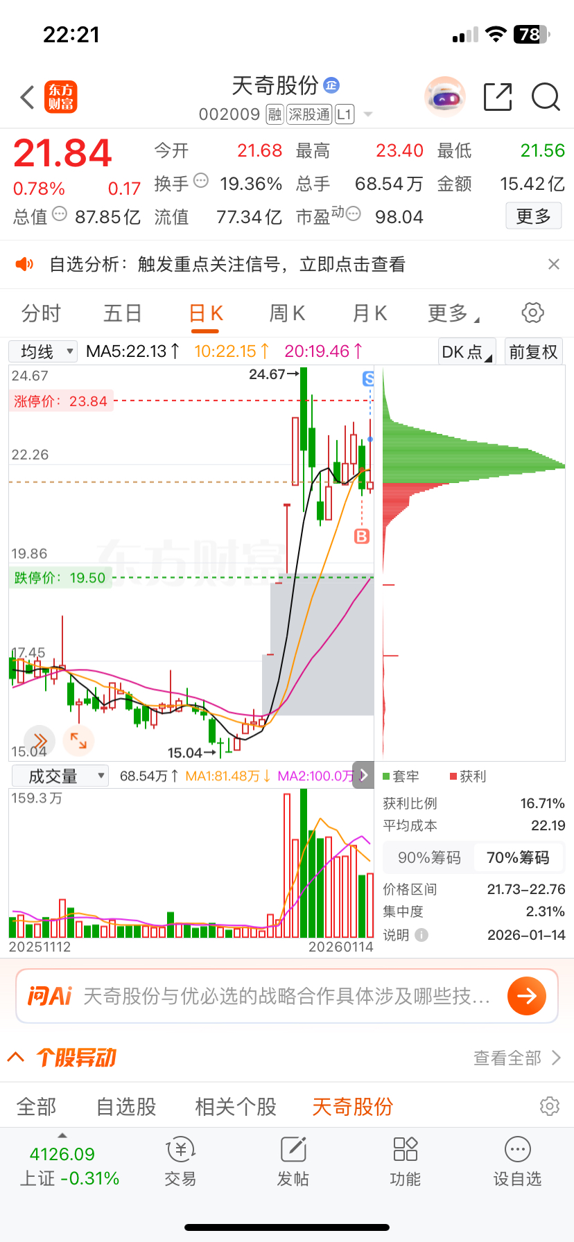 $天奇股份(SZ002009)$ 今天虽然走了,但还会在来,航天垮了,机器人一定有很多机会,而且这票最近一直在震荡。说明主力有护盘,