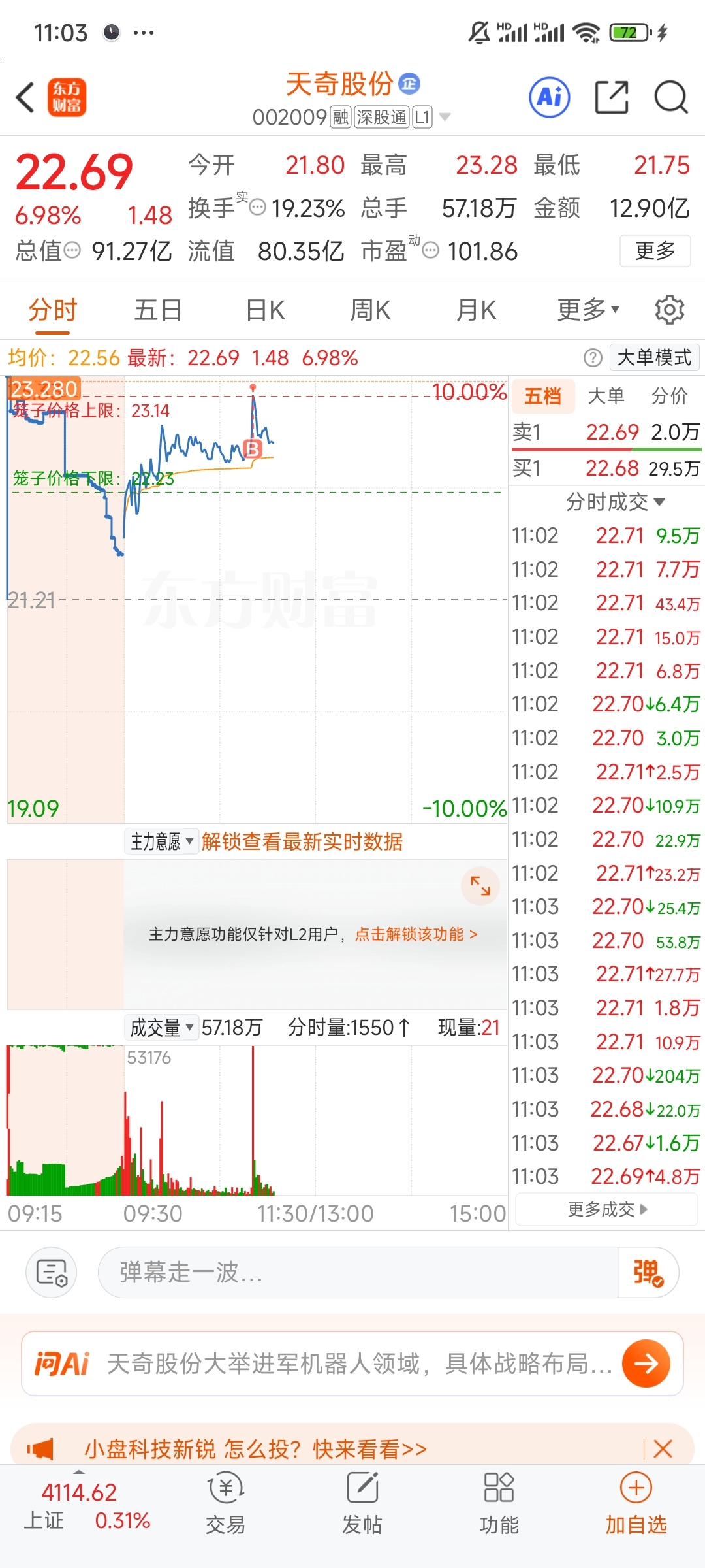 $天奇股份(SZ002009)$ 挂山顶了,主力满意了吧