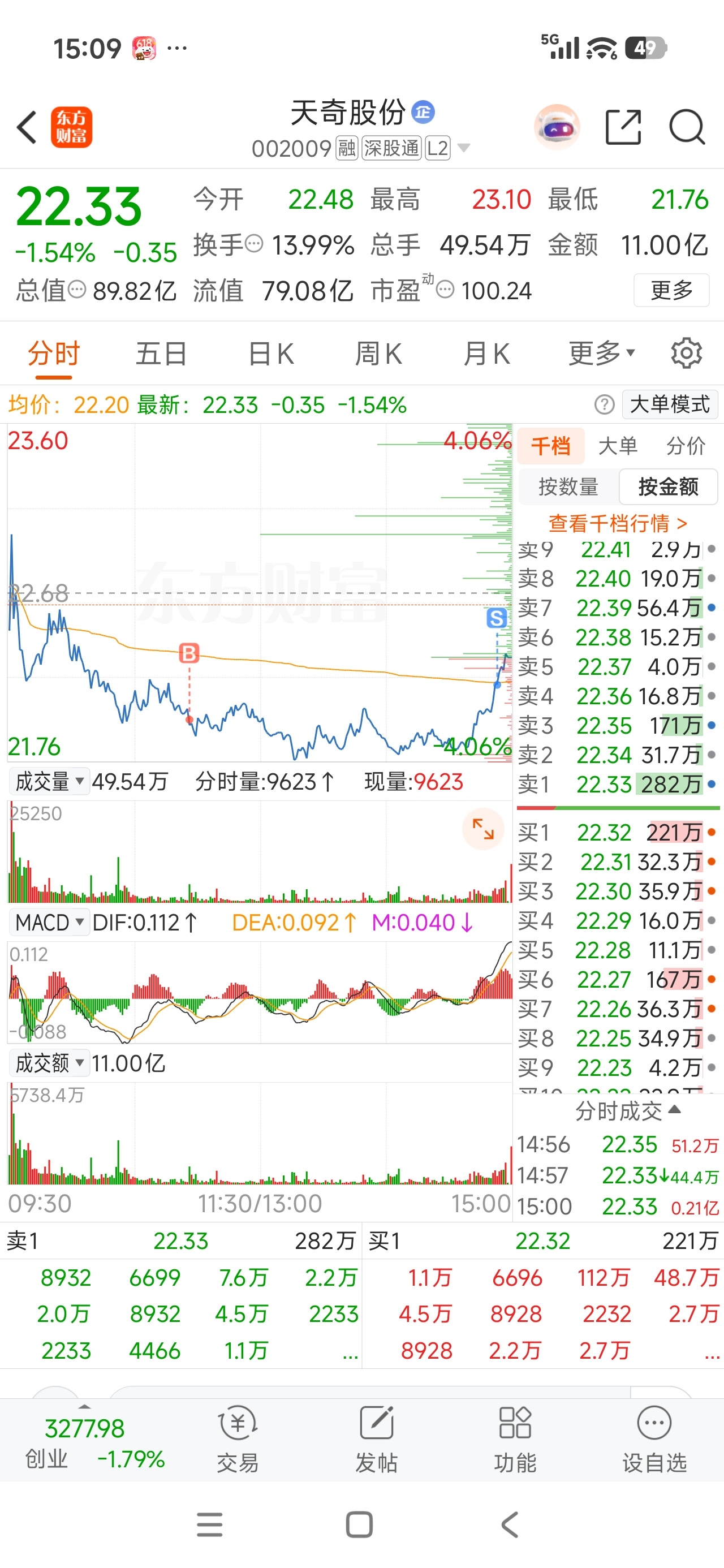 $天奇股份(SZ002009)$ 尾盘挂21.80没成交,非要拉起来,如果尾盘不拉,明天有涨停的预期