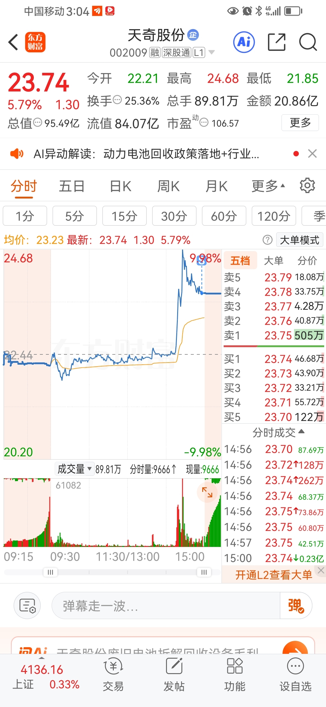 $天奇股份(SZ002009)$ 又放跑一个涨停