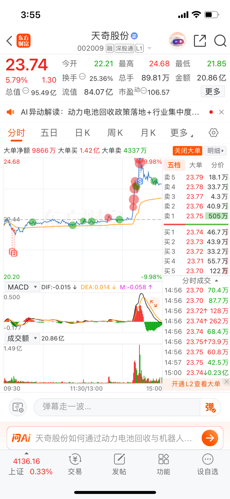 $天奇股份(SZ002009)$ 被我砸下来了