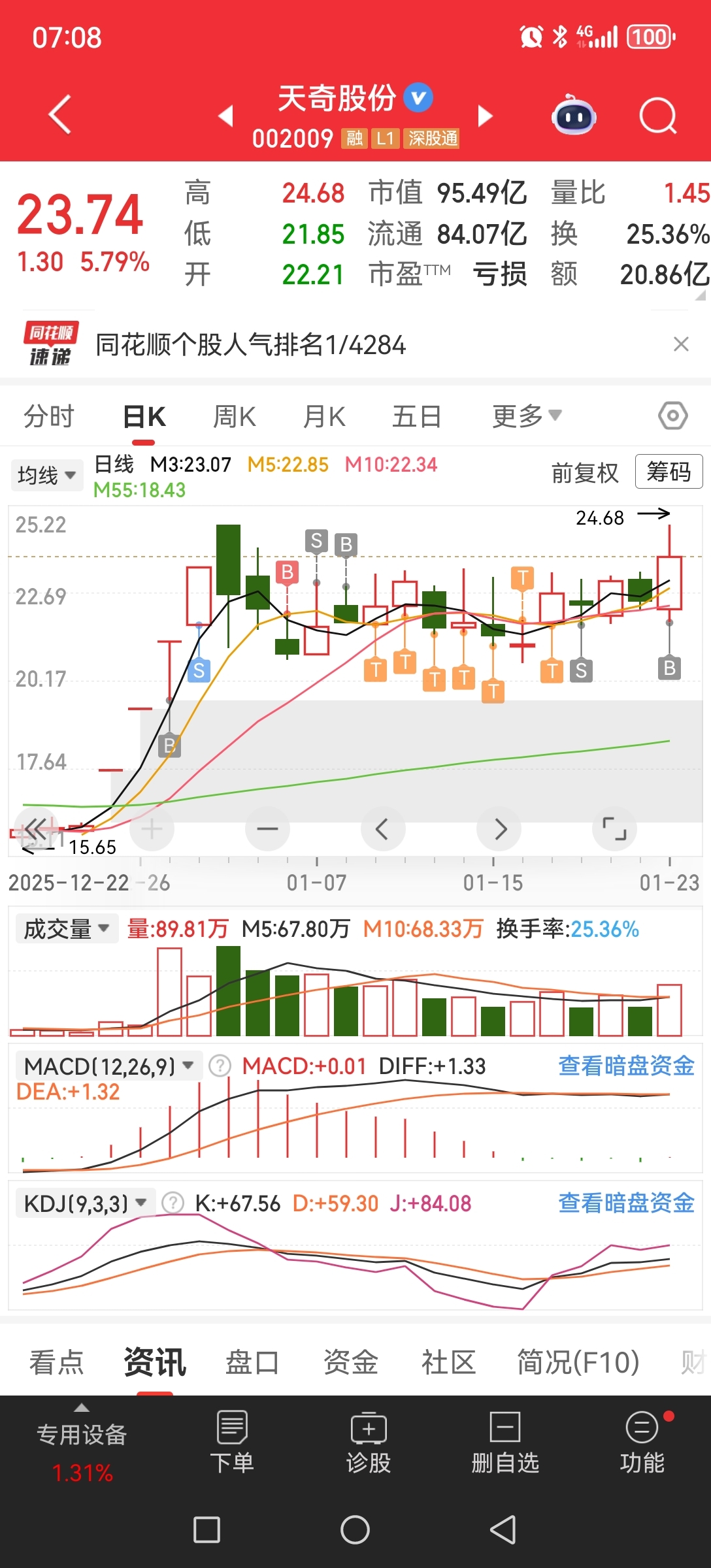 $天奇股份(SZ002009)$ 主力太苍了,我一直盯着呢,周五收盘绿就是走坏了,幸亏上来了
