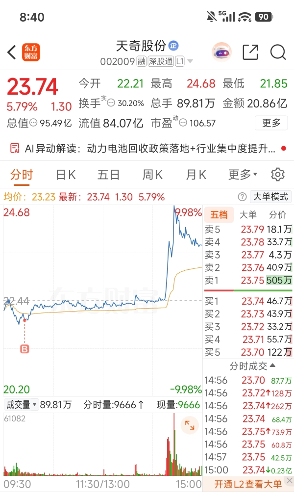$天奇股份(SZ002009)$ 今天能不能给个涨停