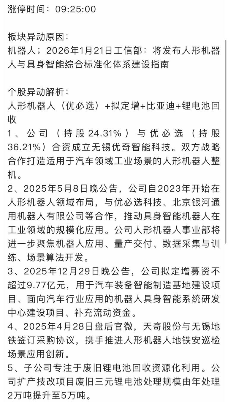 $天奇股份(SZ002009)$