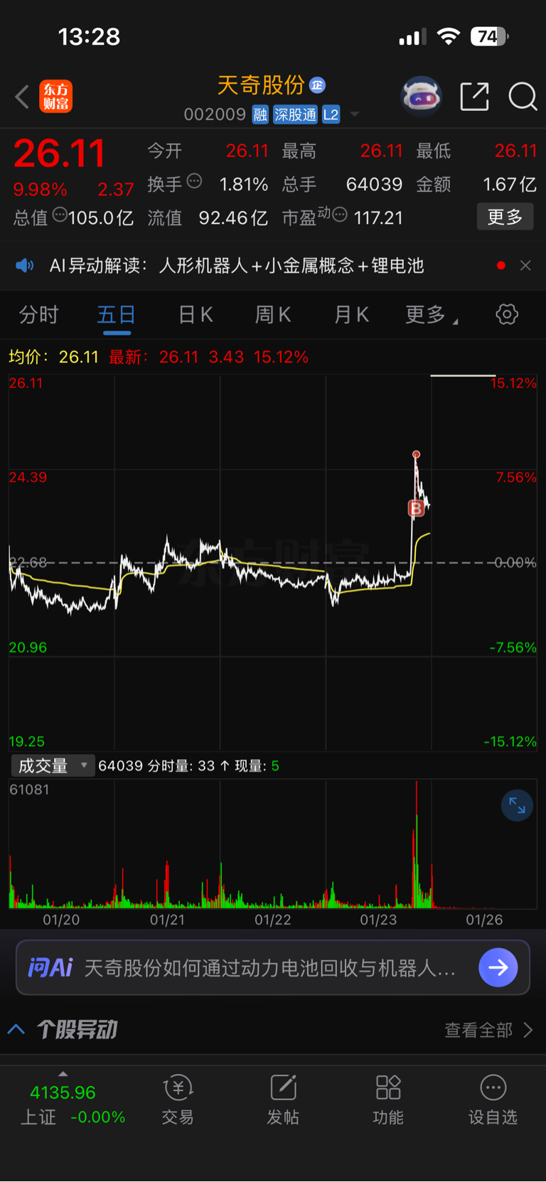 $天奇股份(SZ002009)$ 周五不封,为什么今天一字,真是玩不来