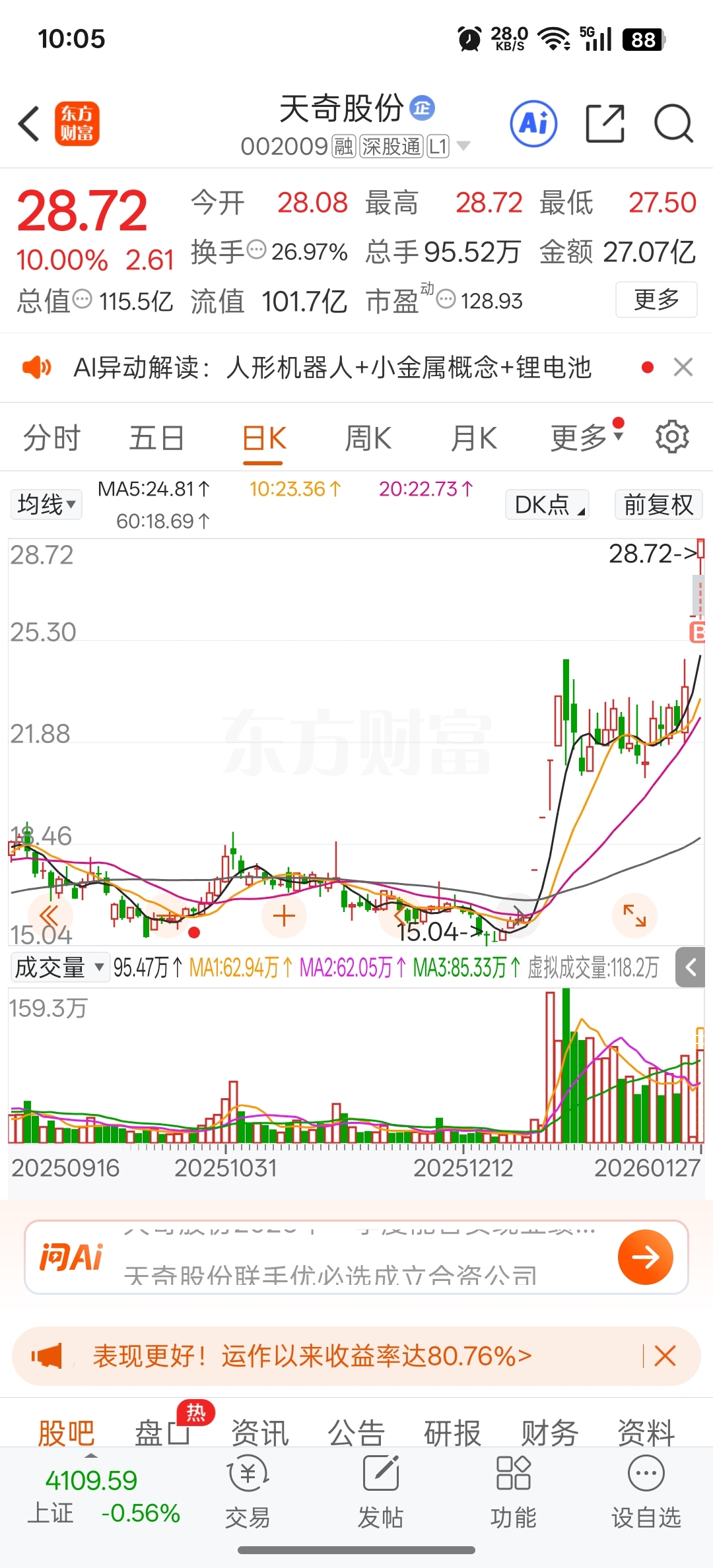 $天奇股份(SZ002009)$