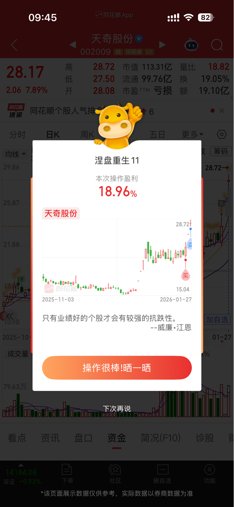 $天奇股份(SZ002009)$ 周五尾盘进的今天走了