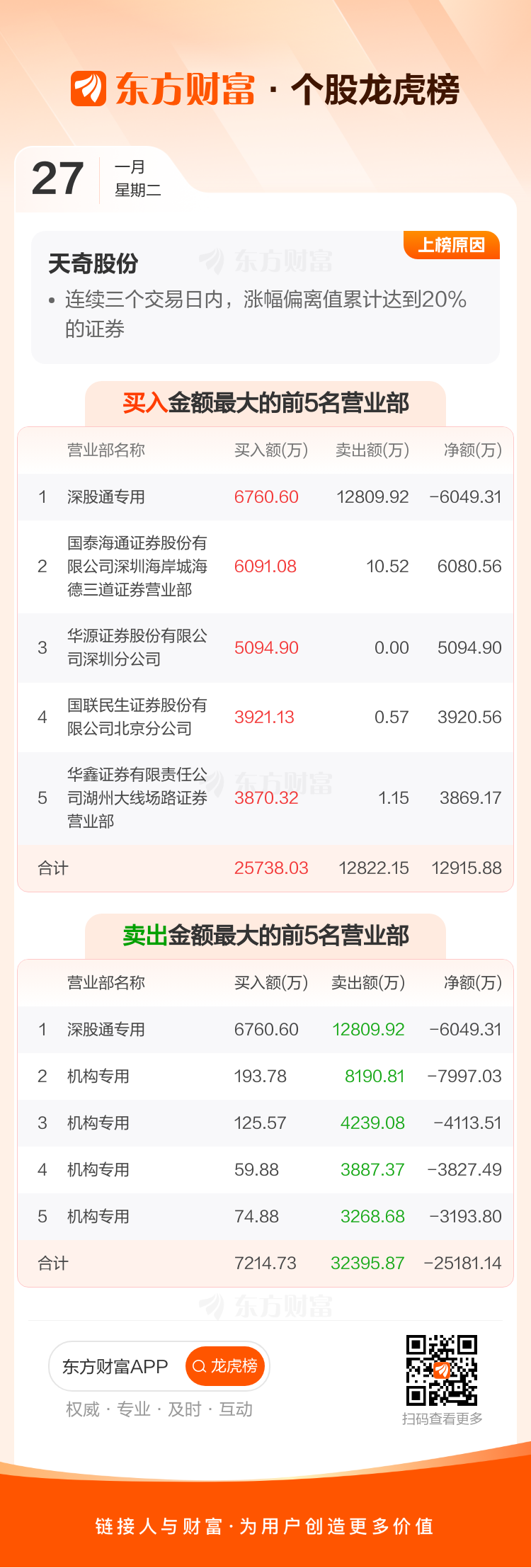 天奇股份(002009)龙虎榜数据(01-27)