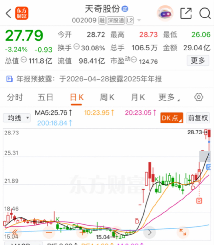 $天奇股份(SZ002009)$ 出了,没想到今天一点溢价都不给呀,拉高也放到下午,本来想多拿一段时间的,一点溢价不给,拿不住了