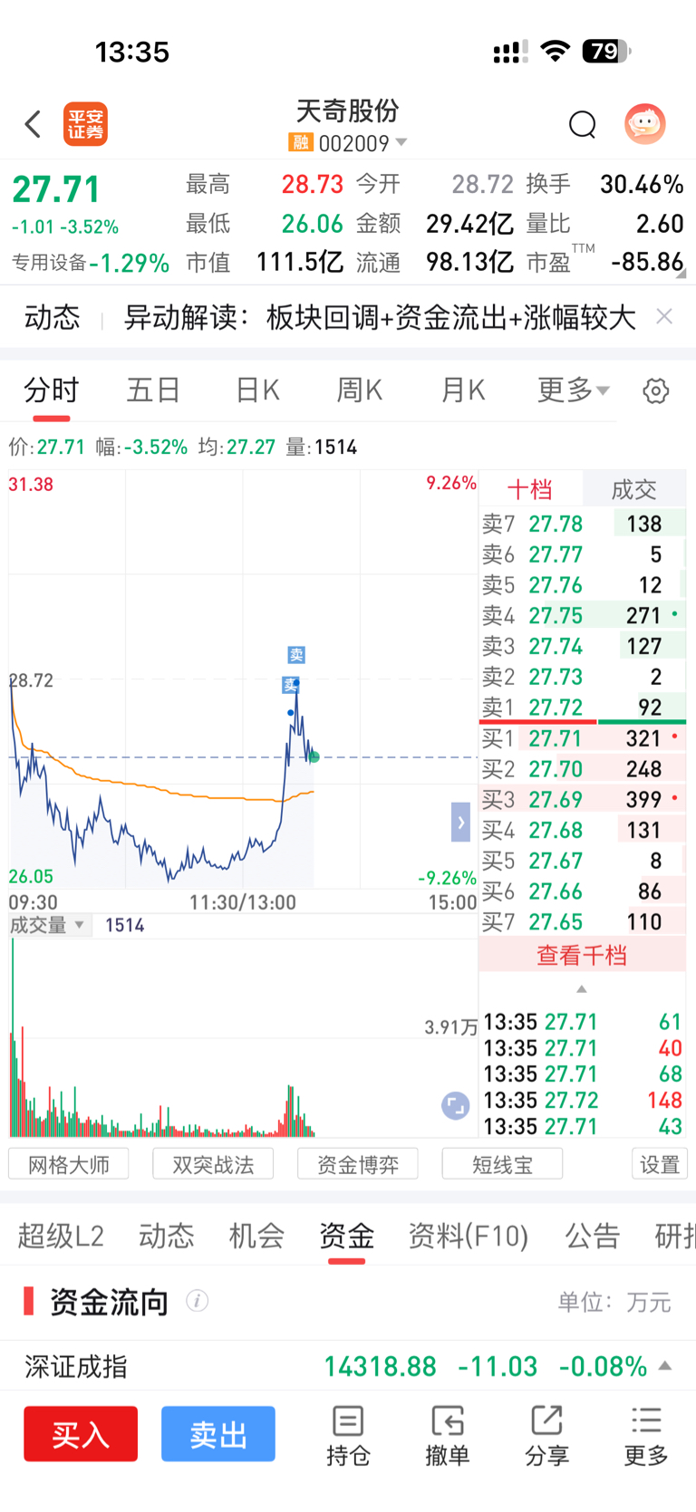$天奇股份(SZ002009)$ 谢谢大哥,昨天打板进,今天竞价不及预期,跑不掉,下午亏1个多点跑了,留下的兄弟发财