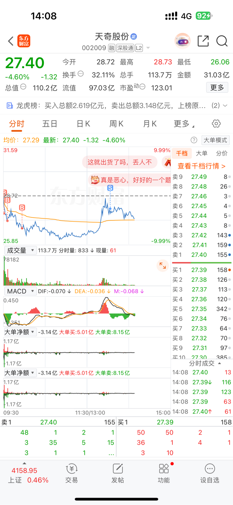 $天奇股份(SZ002009)$ 还是得谢谢主力,让我少亏一点