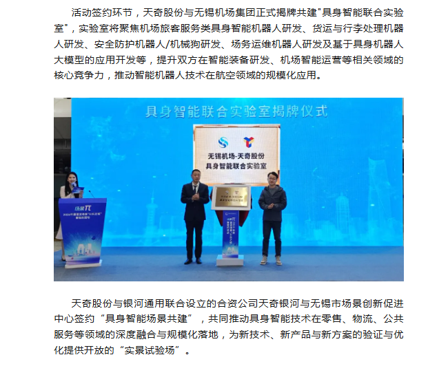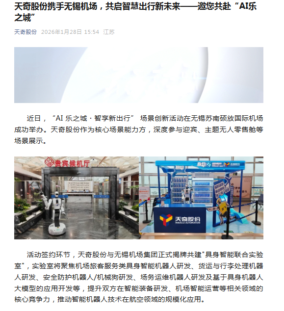 天奇股份携手无锡机场,共启智慧出行新未来——邀您共赴“AI乐之城”
