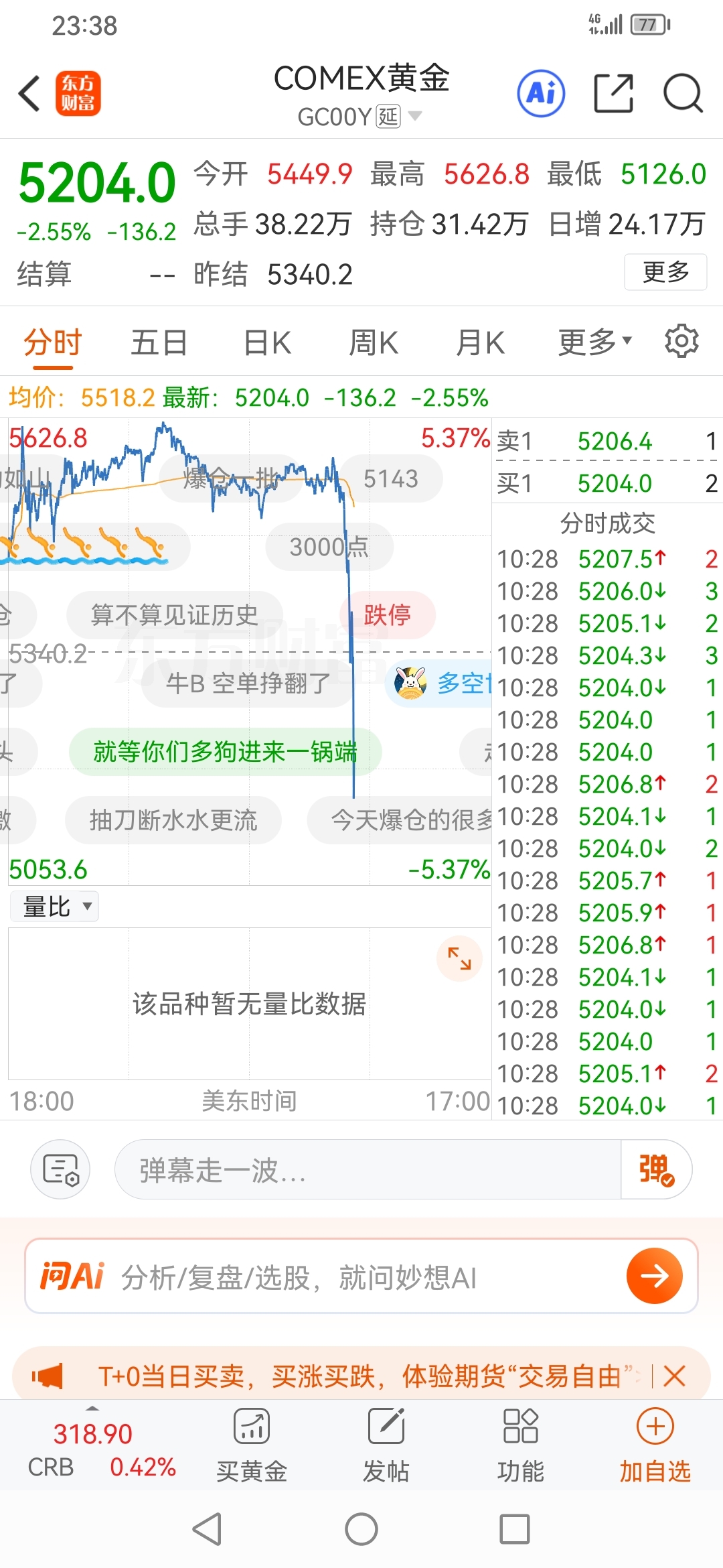 贵金属跌,暴跌,实时跌了百分之五,明天机器人概念起飞