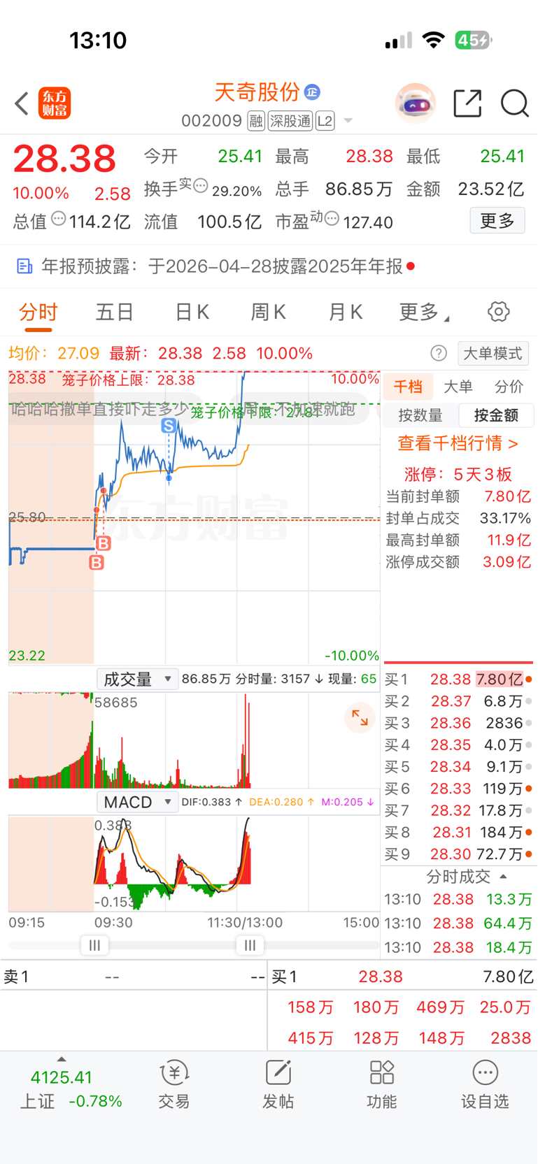 $天奇股份(SZ002009)$ 这怎么不T飞啊