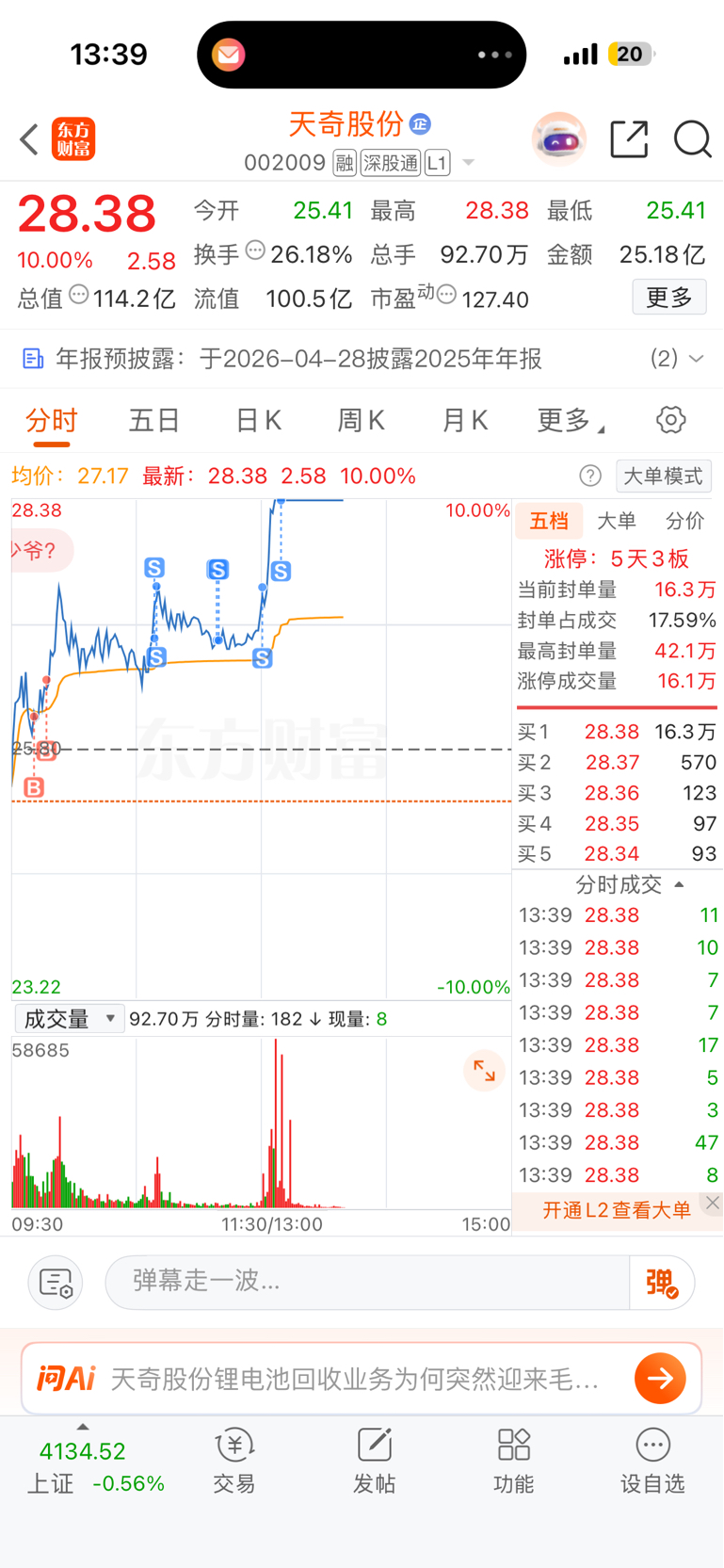 $天奇股份(SZ002009)$ 100我仓位给我卖飞了60万靠