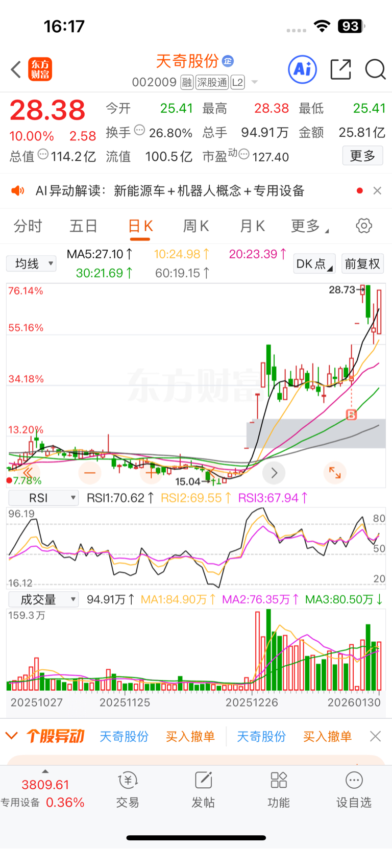 $天奇股份(SZ002009)$ 没有花里胡哨的操作,化繁为简最见功力,做一个漂亮的波段,感兴趣的可以点个关注,缘分让你我相遇,炒股也修身养性