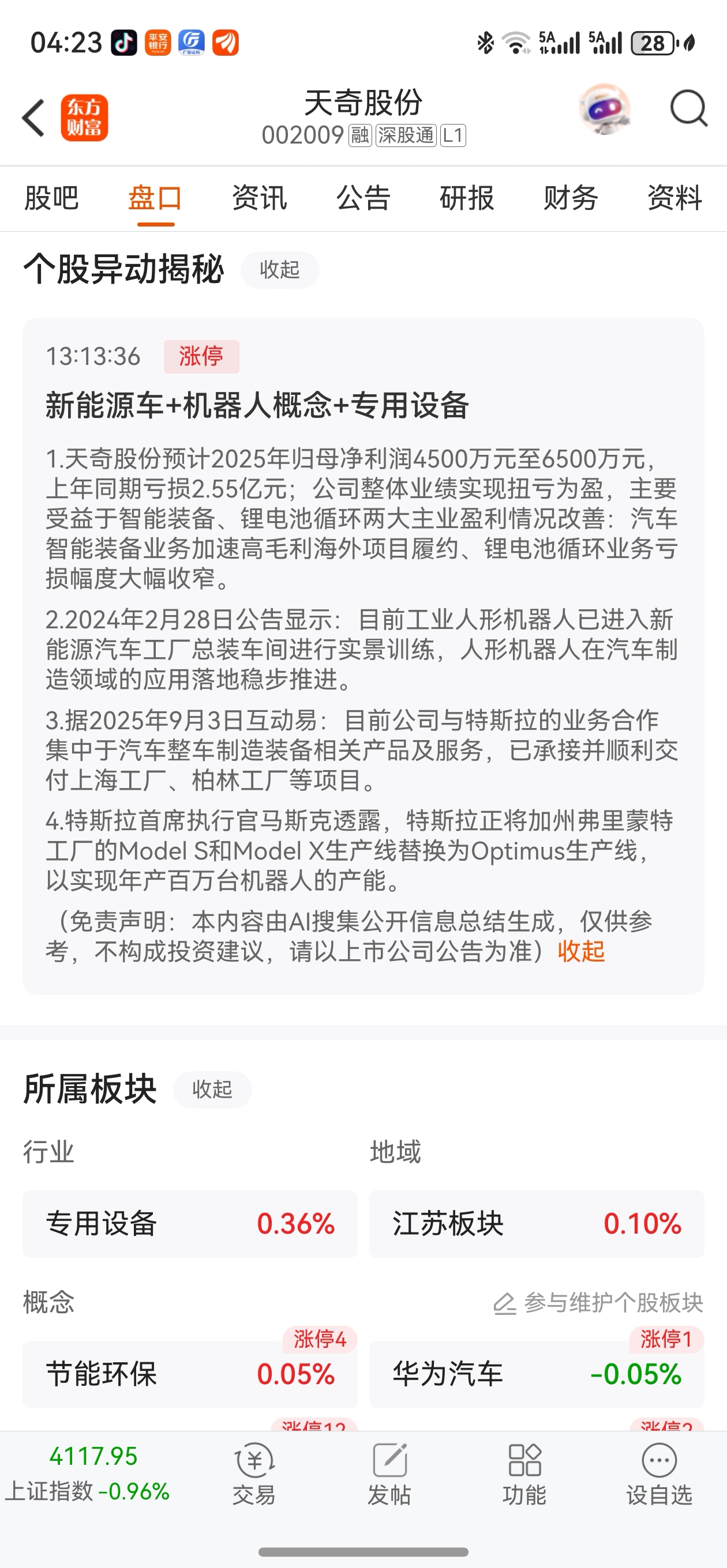 $天奇股份(SZ002009)$$百达精工(SH603331)$$欧科亿(SH6