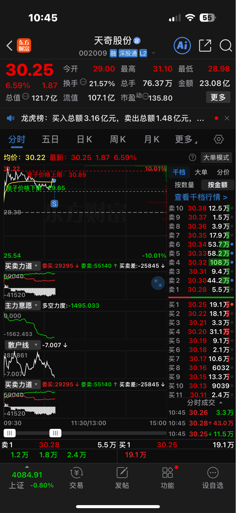 $天奇股份(SZ002009)$ 7个点走了