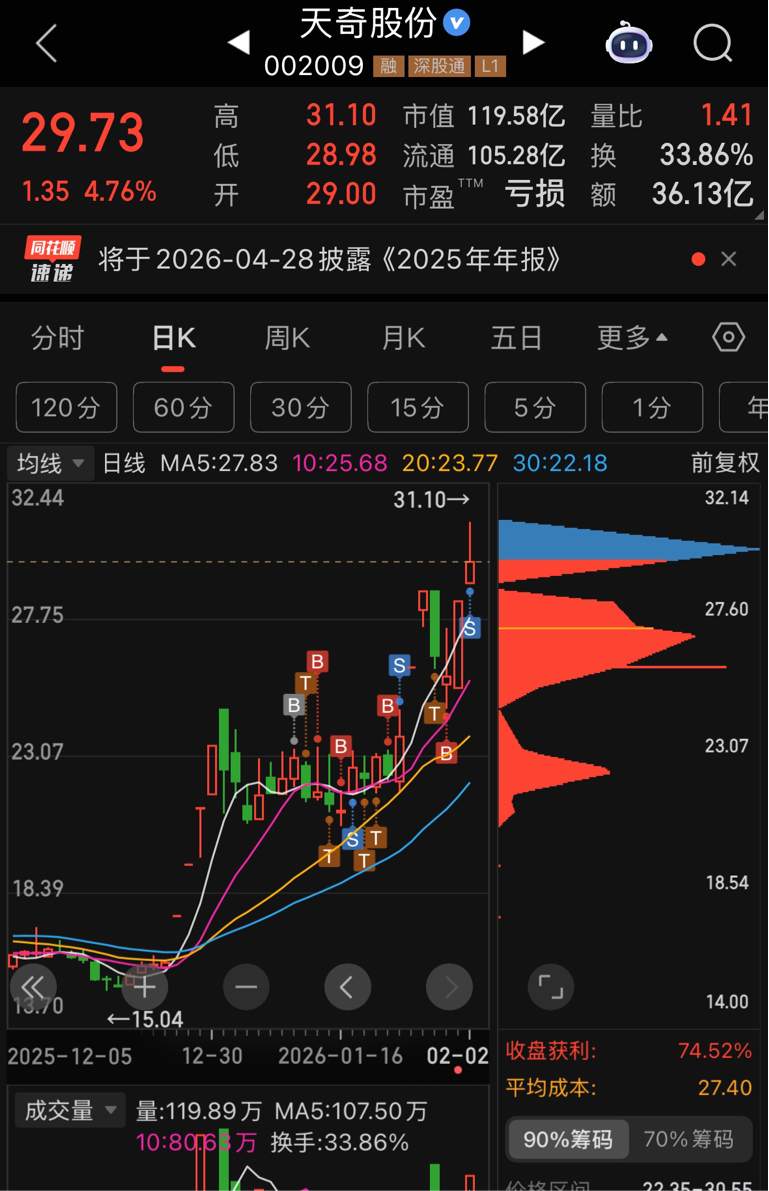 $天奇股份(SZ002009)$ 清了,本次盈利53个点,祝兄弟们后面继续吃肉