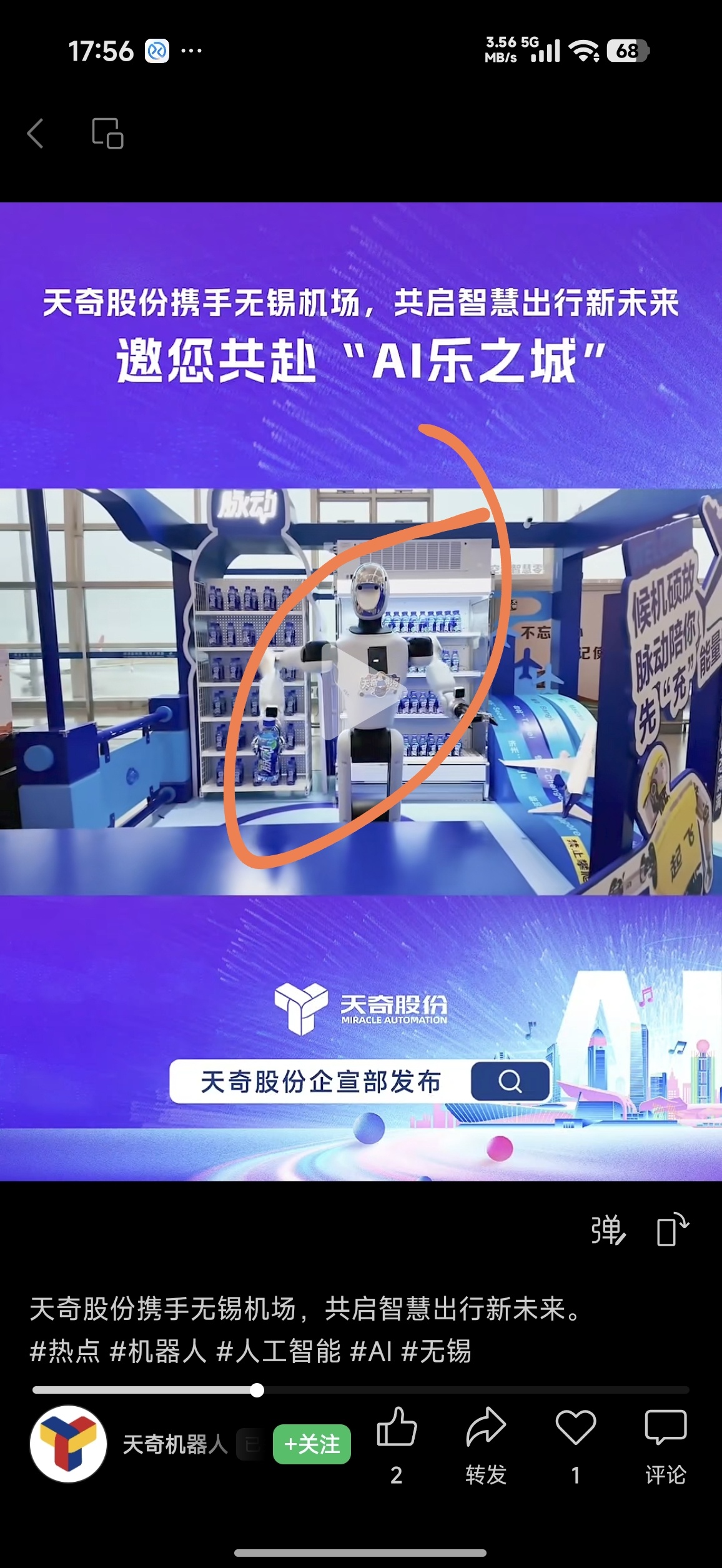 上晚的机器人就是天奇银河,制造的这款。训练中心是在无锡,制造中心也在无锡。是天奇
