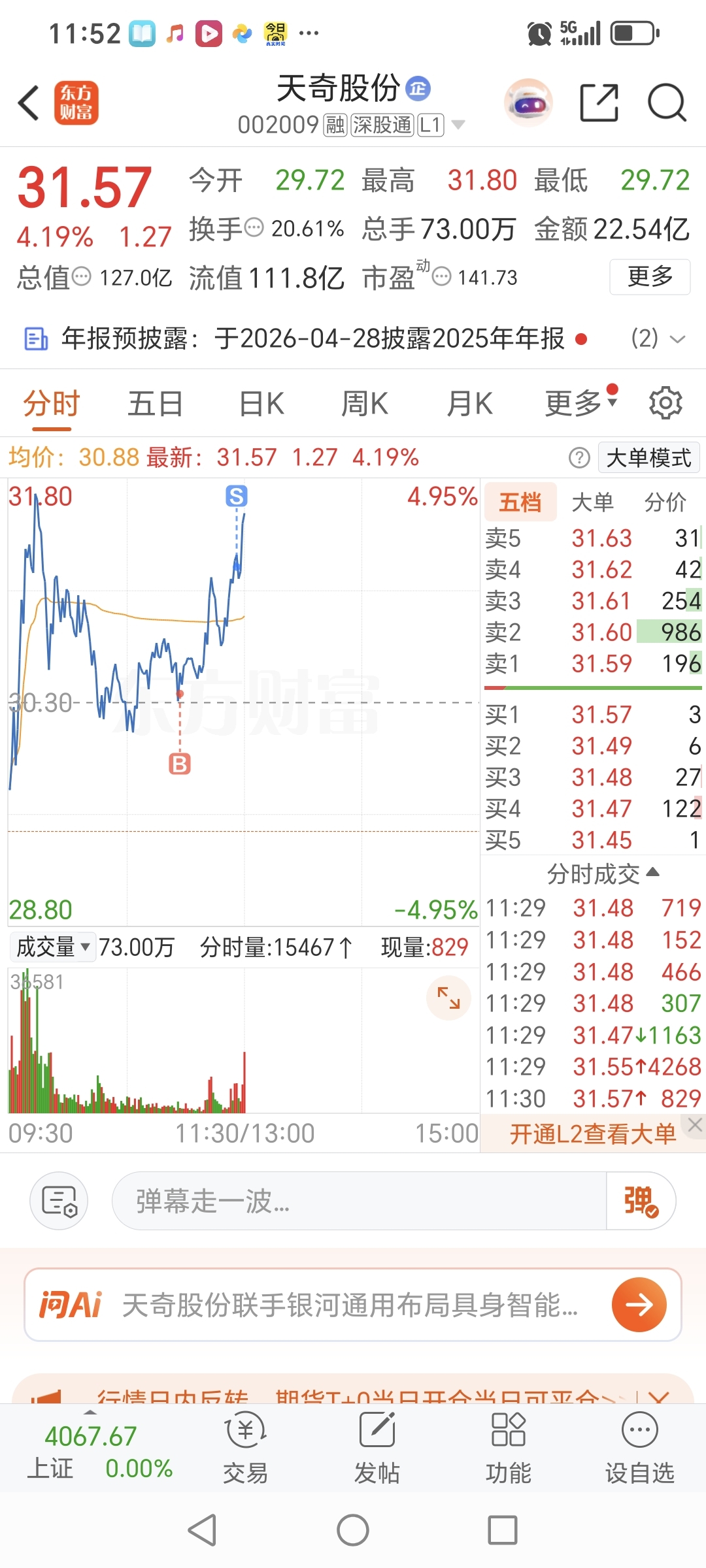 $天奇股份(SZ002009)$ T倒是做的挺漂亮,就是卖飞了