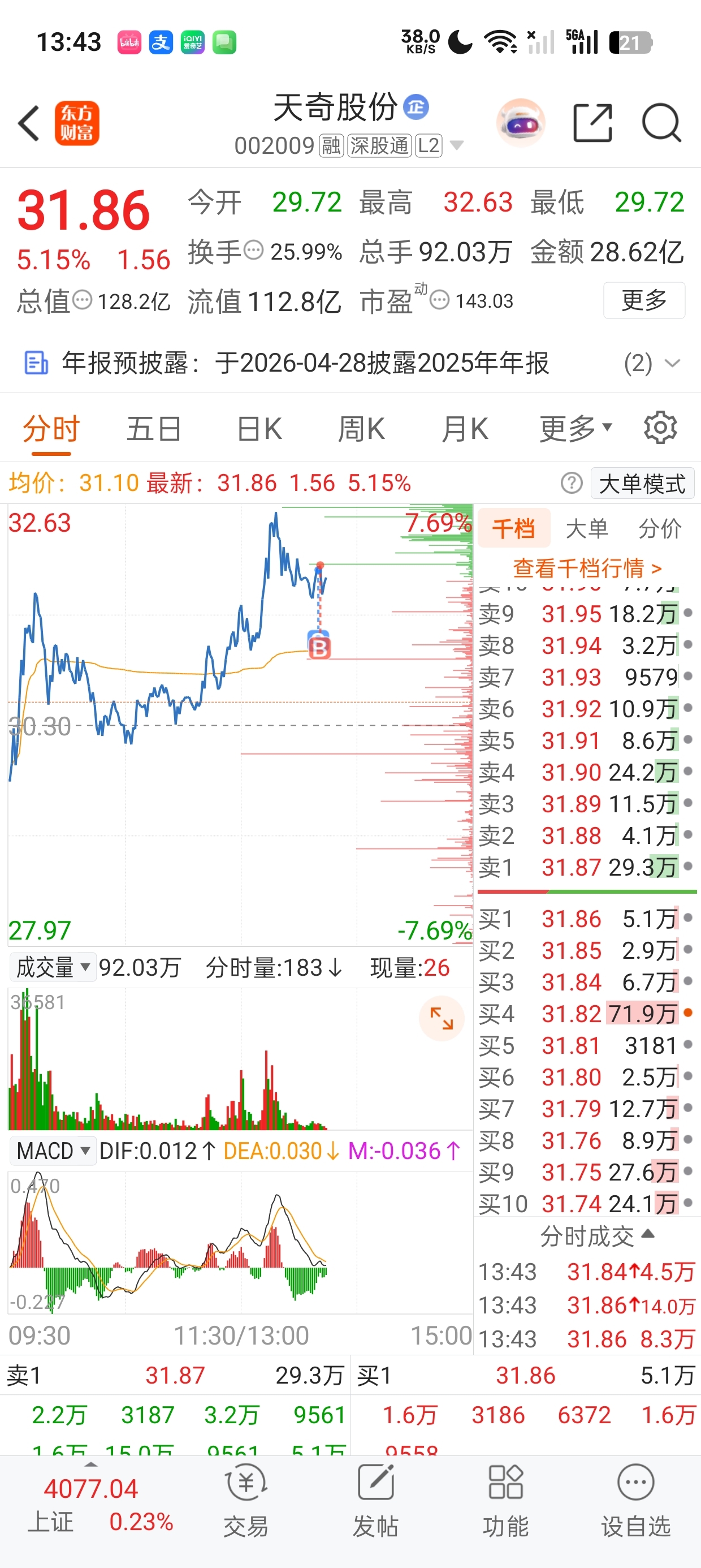 $天奇股份(SZ002009)$ 防止我卖飞,卖了再买