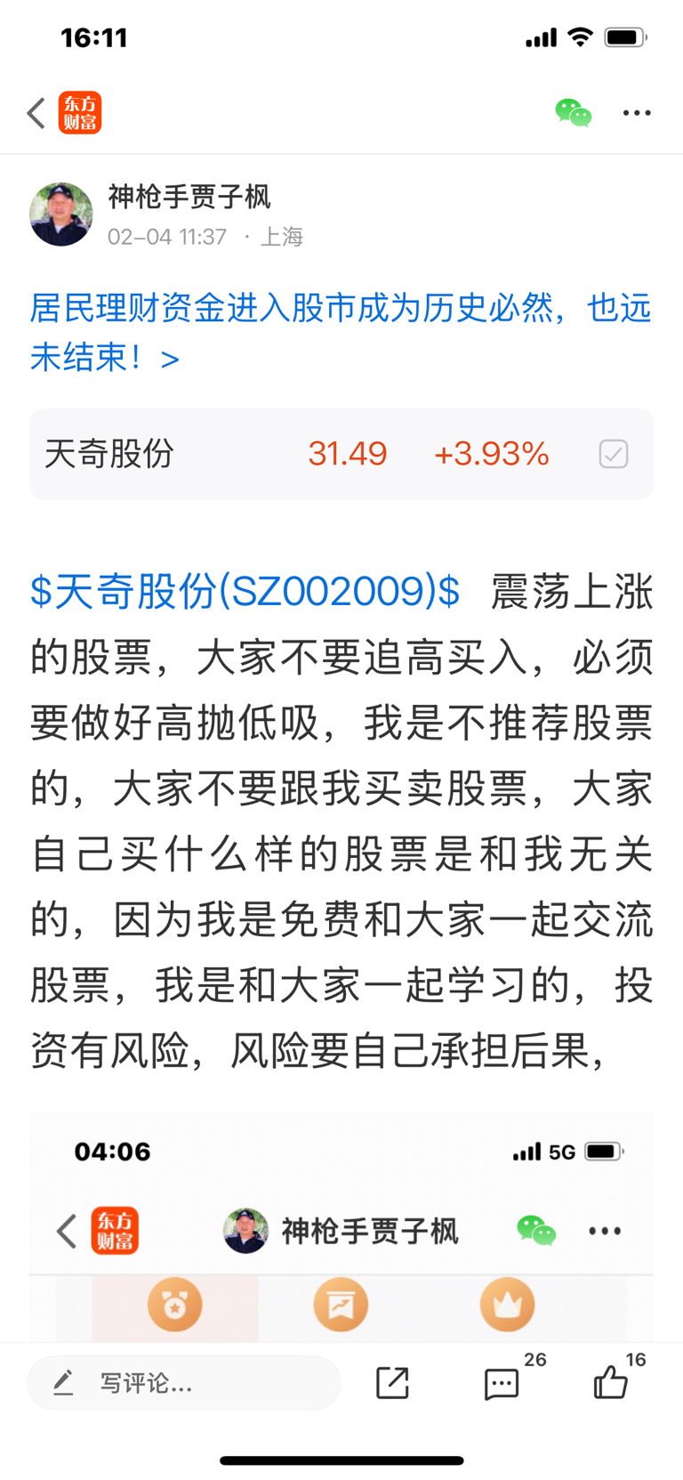 $天奇股份(SZ002009)$  震荡上涨的股票,大家不要追高买入,必须要做好高抛低吸,我是不推荐股票的,大家不要跟我买卖股票,大家自己买什么样的股票是和我无关的,