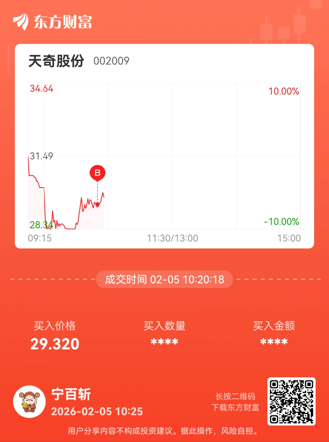 温馨提示: 1.根据《证券法》规定,禁止编造、传播虚假信息或者误导性信息,扰乱证券市场;2.用户在本社区发表的所有资料、言论等仅代表个人观点,与本网站立场无关,不对您构成任何投资建议。用户应基于自己的独立判断,自行决定证券投资并承担相应风险。《东方财富社区管理规定》