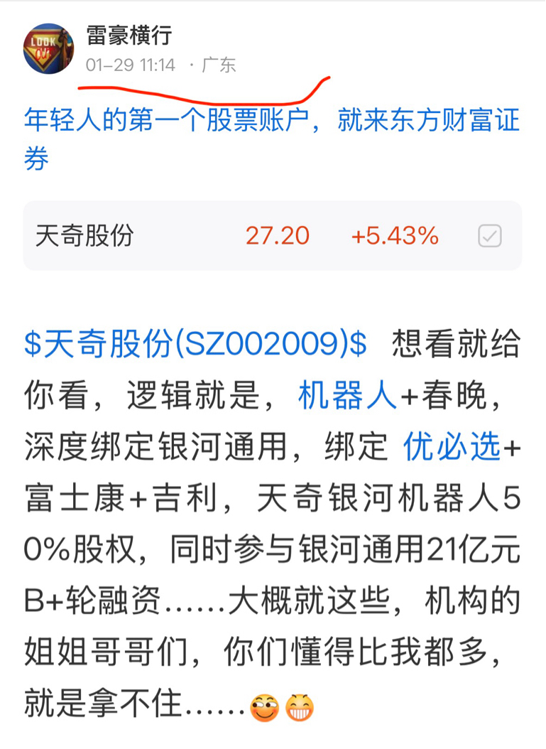 郑重声明:用户在财富号/股吧/博客等社区发表的所有信息(包括但不限于文字、视频、音频、数据及图表)仅代表个人观点,与本网站立场无关,不对您构成任何投资建议,据此操作风险自担。请勿相信代客理财、免费荐股和炒股培训等宣传内容,远离非法证券活动。请勿添加发言用户的手机号码、公众号、微博、微信及QQ等信息,谨防上当受骗!