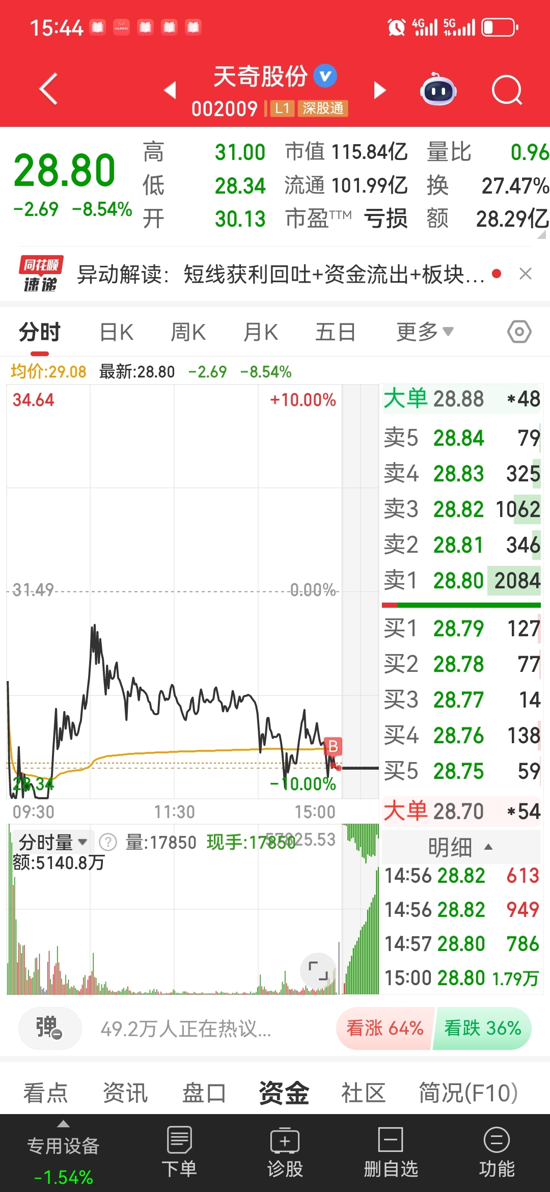$天奇股份(SZ002009)$ 尾盘搞进来了,希望明天吃点溢价