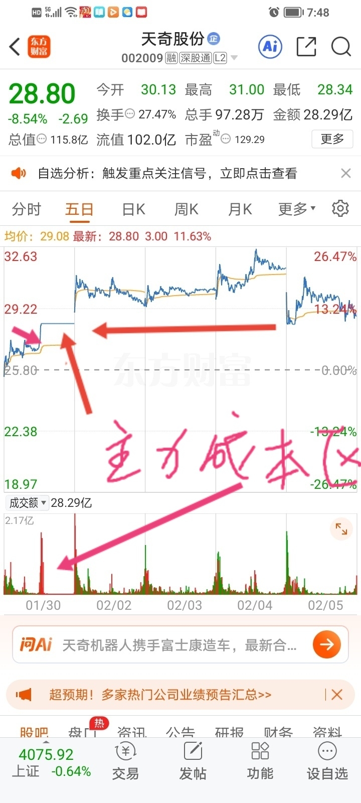 $天奇股份(SZ002009)$ 开盘即使有下探也空间不大,下面有大个子顶着。