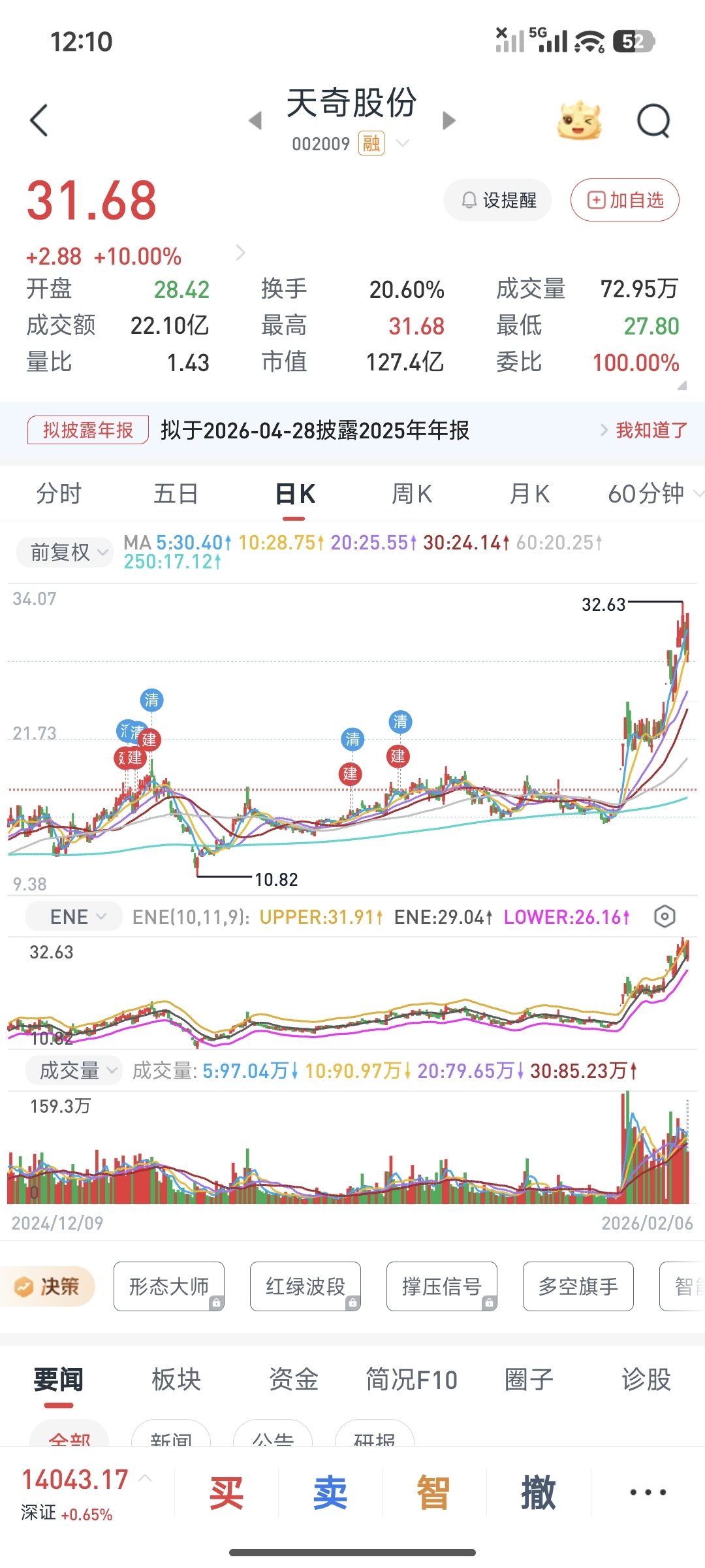 $天奇股份(SZ002009)$ 错过天奇,还是自己短线认知速度和反应不够快,恭喜吃肉的吧友,有能者才能吃到这块肉