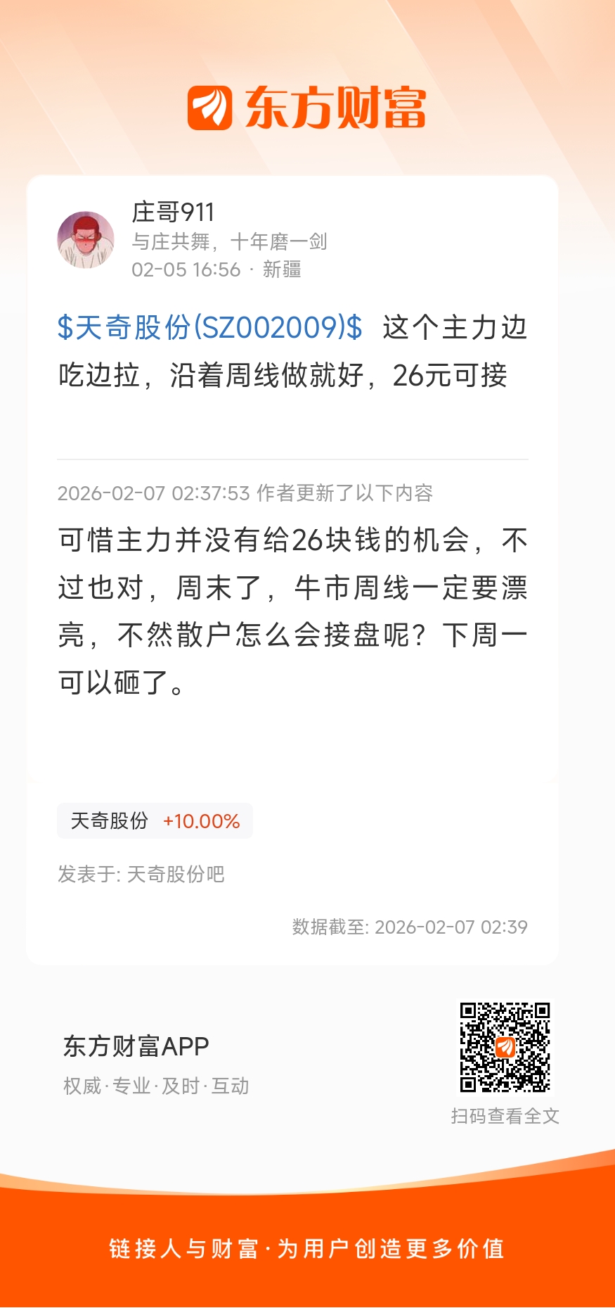 $天奇股份(SZ002009)$  这个主力边吃边拉,沿着周线做就好,26元可接
