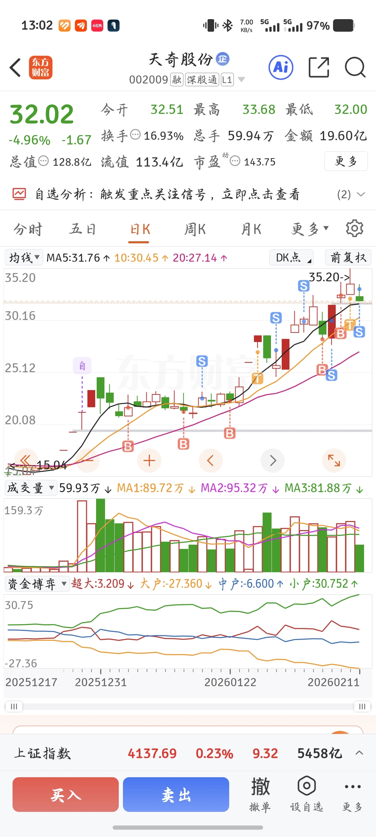 $天奇股份(SZ002009)$ 在的,一直会在的!跟到最后一刻?